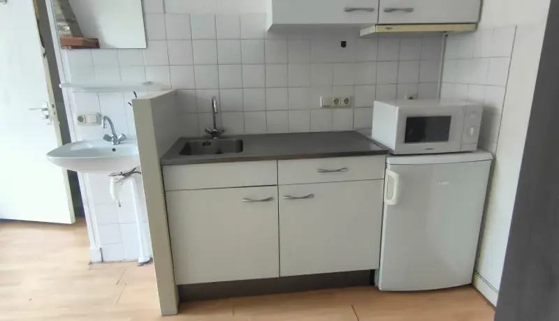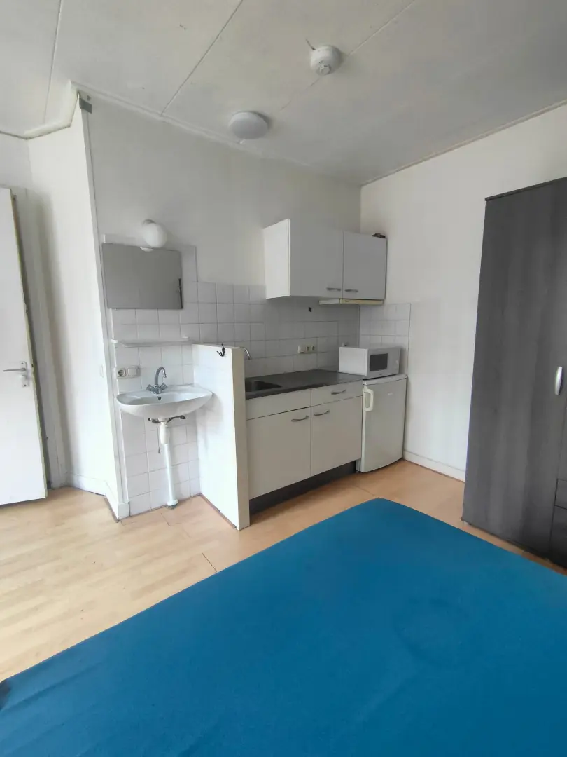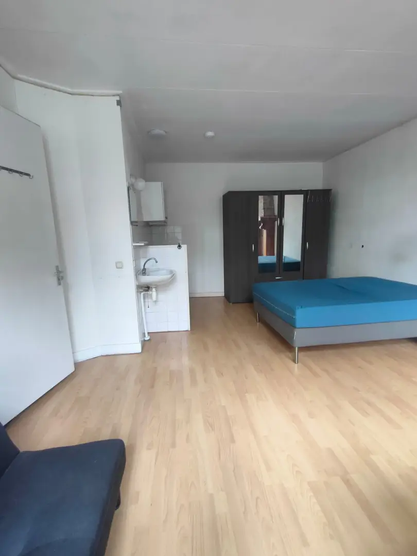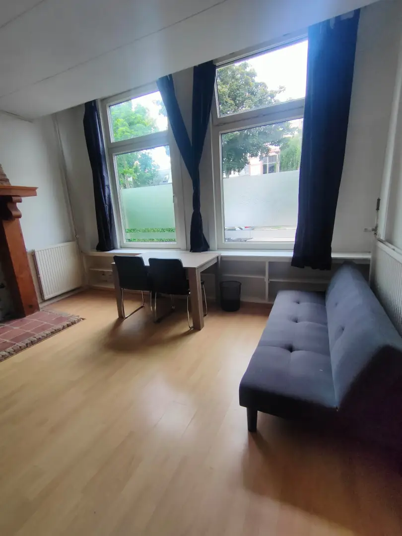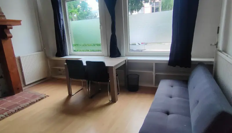 The Johan Willem Frisostraat 17 house is a townhouse in a typical dutch street. This room at the Johan Willem Frisostraat 17 is 27 m2 big. You will share the house with four other roommates. The accommodation is fully equipped with furniture. Additionally this room features a private washing basin. The house also features a backyard. The kitchen, shower and toilet are shared with the four other roommates.