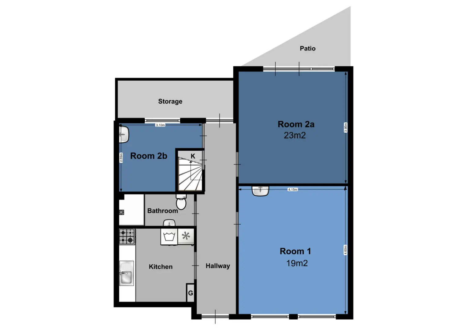 - Living area: 19m²