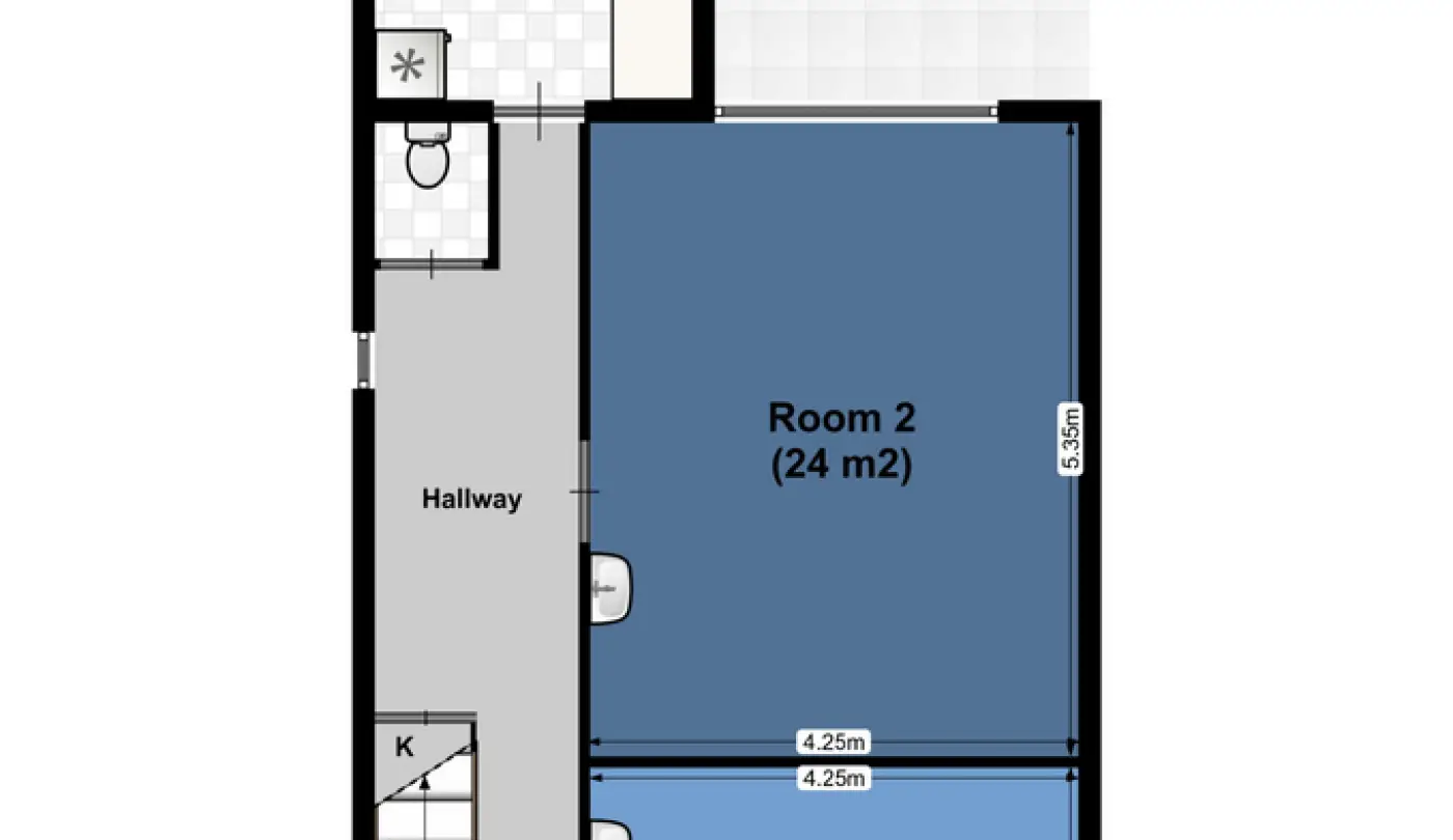 The Achter de Hoven 87 house is a townhouse in a typical dutch street. This room at the Achter de Hoven 87 is 23 m2 big. You will share the house with four other roommates. The accommodation is equipped with furniture such as a bed, wardrobe and a desk. In addition to that, consists the room of a private washing basin. The house also features a backyard. The kitchen, shower and toilet are shared with the four other roommates.