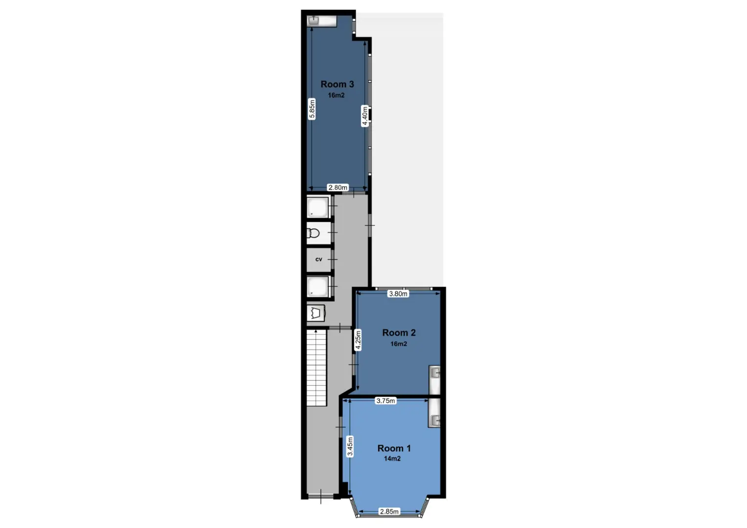 The Meidoornstraat 16 house is a townhouse in a typical dutch street. This room at the Meidoornstraat 16 is 16 m2 big. You will share the house with five other roommates. The accommodation is not equipped with furniture. You can fully design the room with your own furniture to your liking! Additionally this room features a private washing basin as well as a private kitchenette. The house also features a backyard and a rooftop. The kitchen, shower and toilet are shared with the five other roommates.