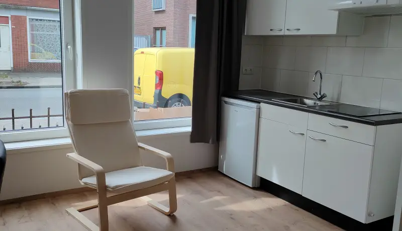 The Achter de Hoven 97 house is a renovated townhouse in a typical dutch street. This studio at the Achter de Hoven 97 is 25 m2 big. You will share the house with four other roommates. The accommodation is equipped with furniture such as a bed, wardrobe and a desk. Additionally the studio has its own kitchen and full bathroom. You share the backyard with one other studio.