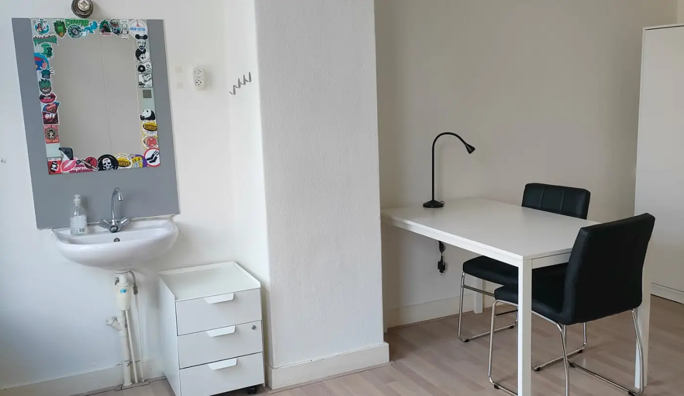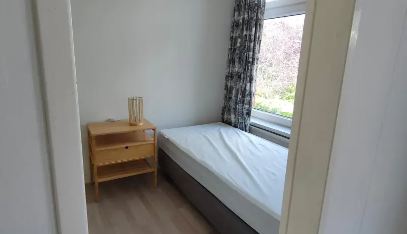 The Johan Willem Frisostraat 17 house is a townhouse in a typical dutch street. This room at the Johan Willem Frisostraat 17 is 25 m2 big. You will share the house with four other roommates. The accommodation is equipped with furniture. Additionally this room features a private washing basin and an additional bedroom. The house also features a backyard. The kitchen, shower and toilet are shared with the four other roommates.
