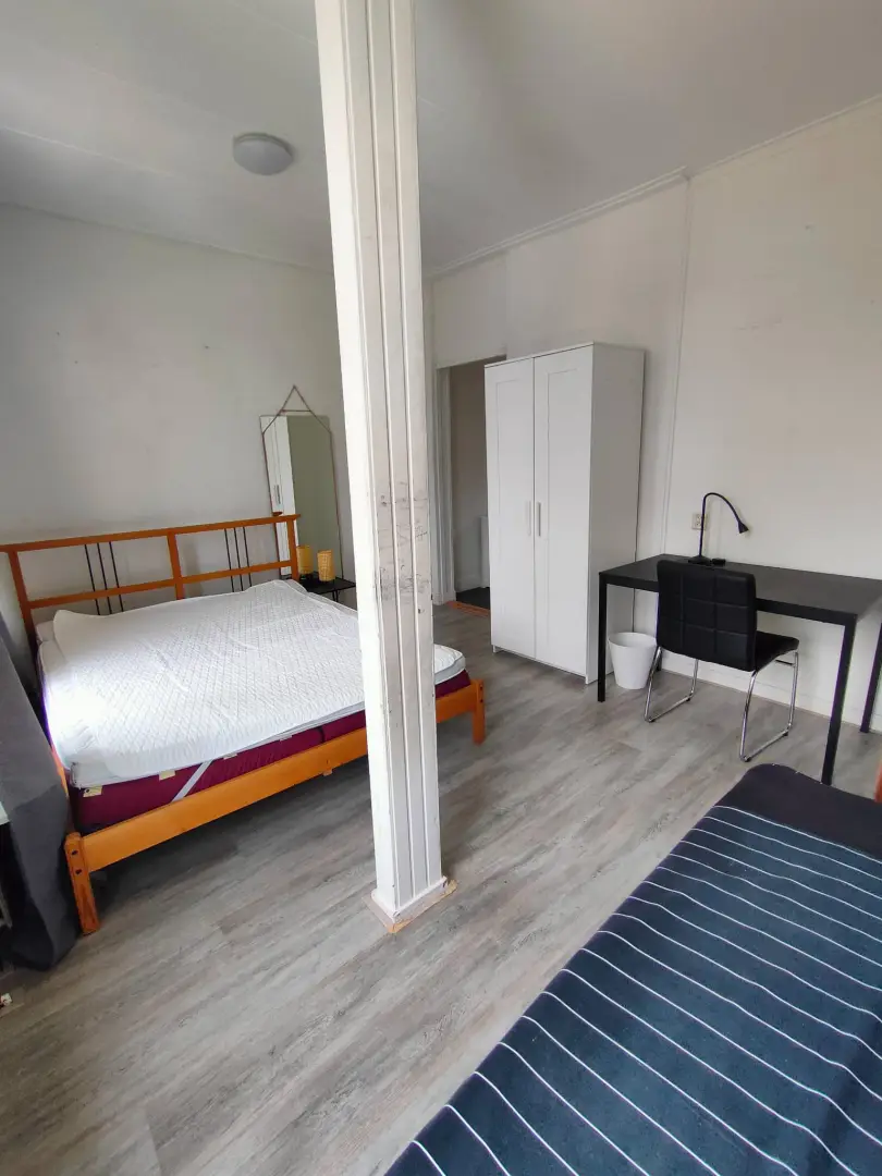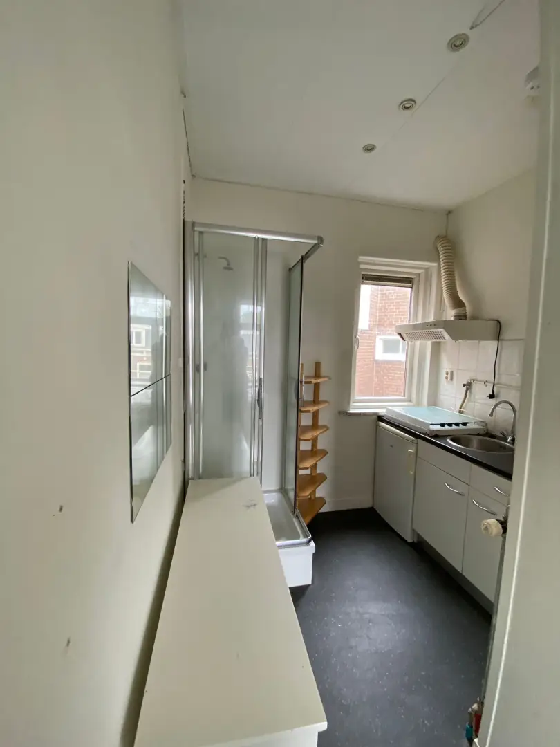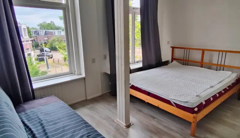 The Maria Louisastraat 30 house is a townhouse in a typical dutch street. This room at the Maria Louisastraat 30 is 18 m2 big. You will share the house with four other roommates. The accommodation is equipped with furniture such as a bed, wardrobe and a desk. Additionally this room features a private washing basin as well as a separate room with private kitchen and a private shower. The house also features a backyard. The kitchen, shower and toilet are shared with the four other roommates.
