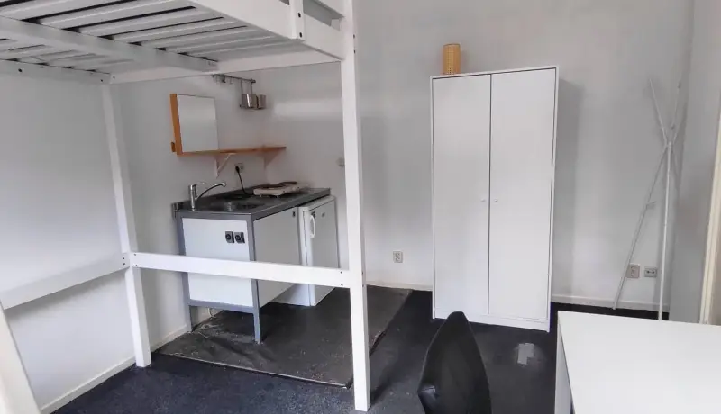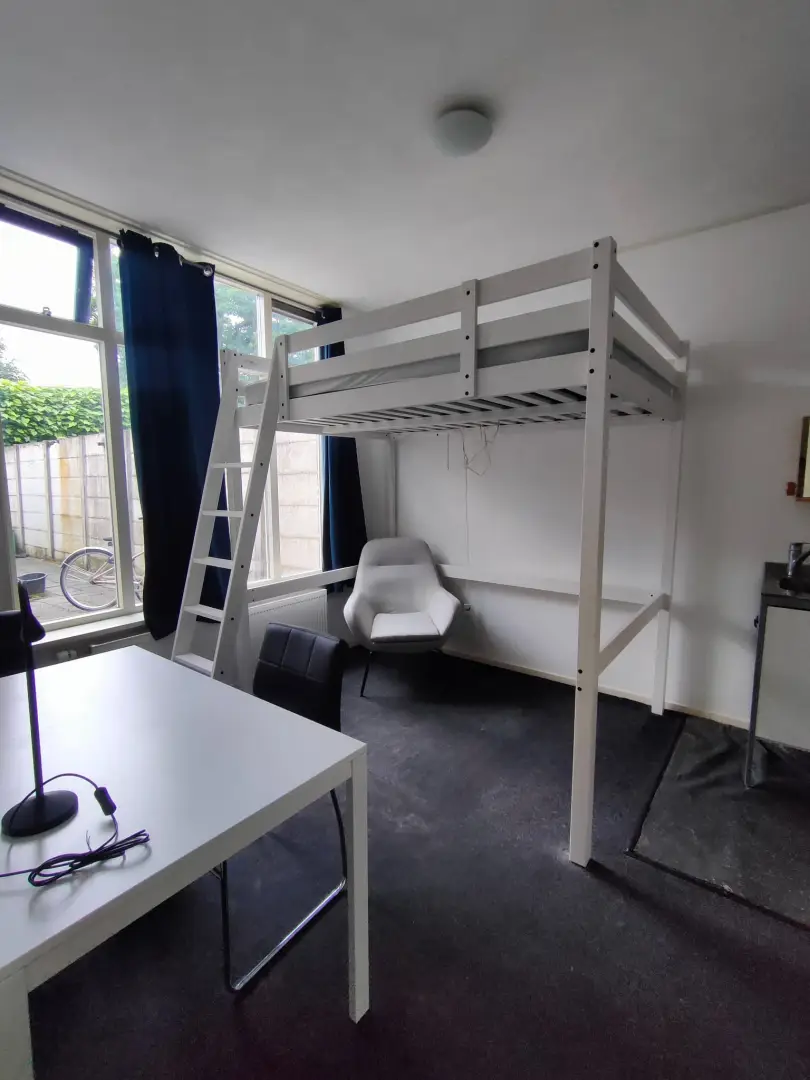 The Meidoornstraat 16 house is a townhouse in a typical dutch street. This room at the Meidoornstraat 16 is 16 m2 big. You will share the house with five other roommates. The accommodation is not equipped with furniture. You can fully design the room with your own furniture to your liking! Additionally this room features a private washing basin as well as a private kitchenette. The house also features a backyard and a rooftop. The kitchen, shower and toilet are shared with the five other roommates.