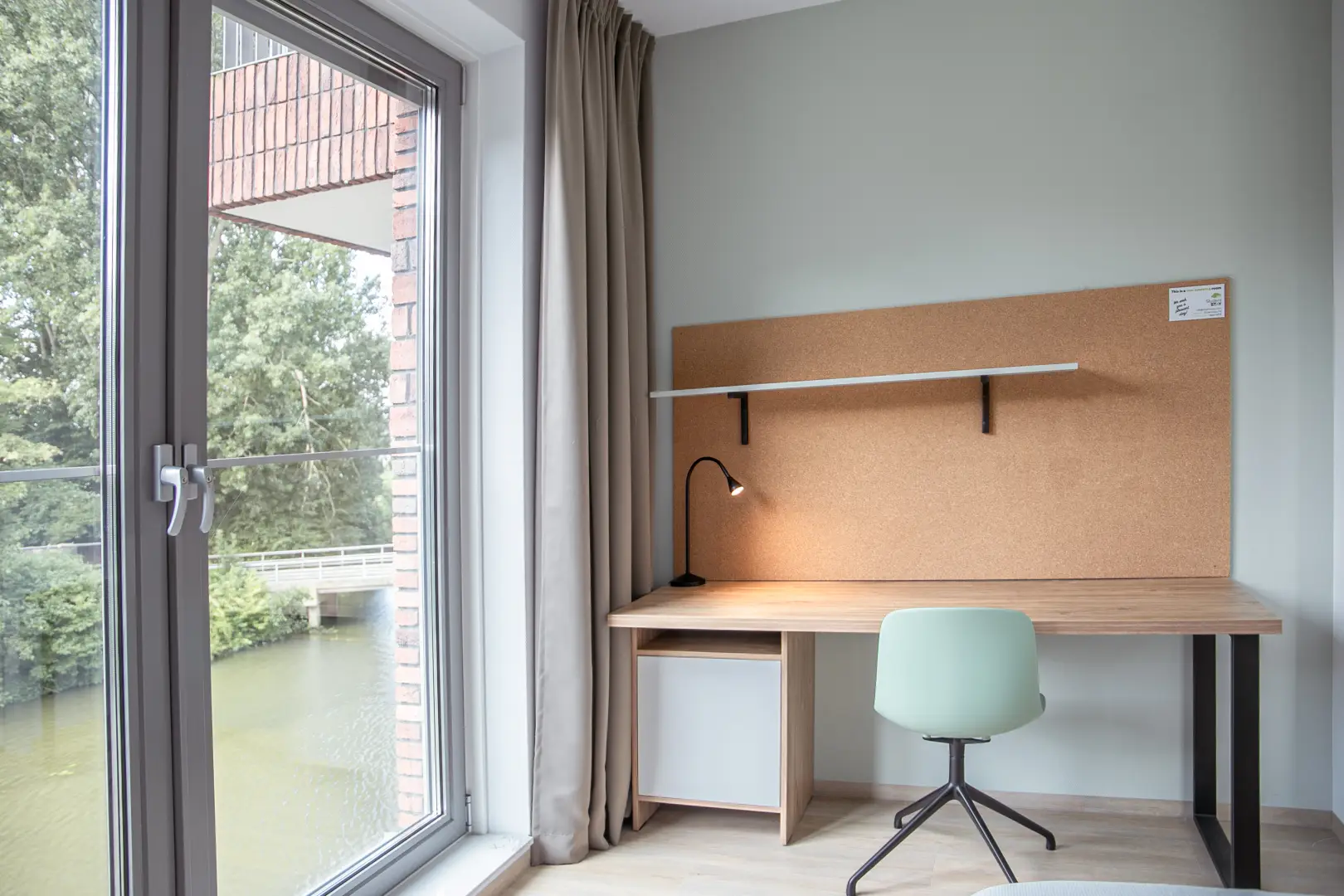This private student room is situated in a beautifully designed shared apartment, offering a comfortable and practical living space. The bed measures 90cm by 200 cm and has storage space underneath. The room has a desk for your homework and a wardrobe.