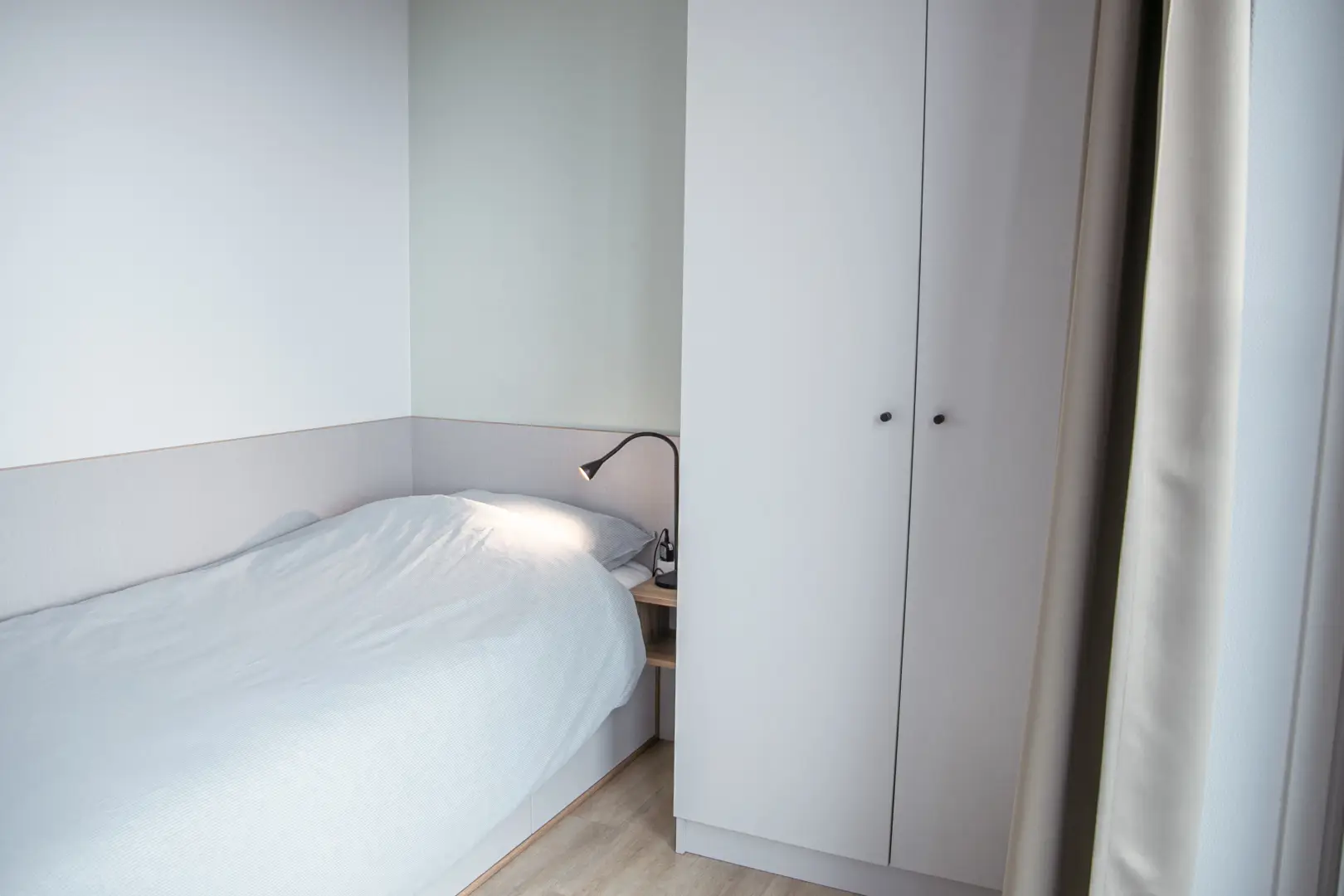 This private student room is situated in a beautifully designed shared apartment, offering a comfortable and practical living space. The bed measures 90cm by 200 cm and has storage space underneath. The room has a desk for your homework and a wardrobe.