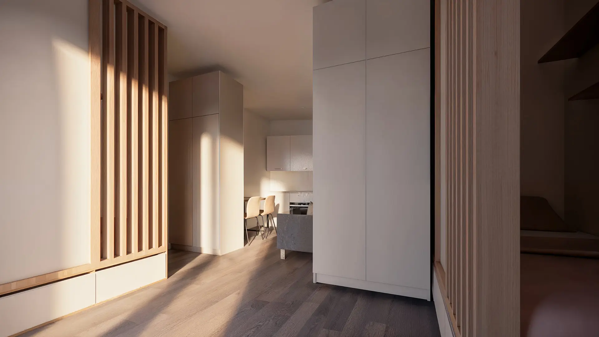 Building E features 181 brand-new studios and apartments, spread across 8 floors. The south-facing side of the building overlooks the scenic Rengerspark. Construction was completed in August 2023, offering modern, high-quality living spaces for students.