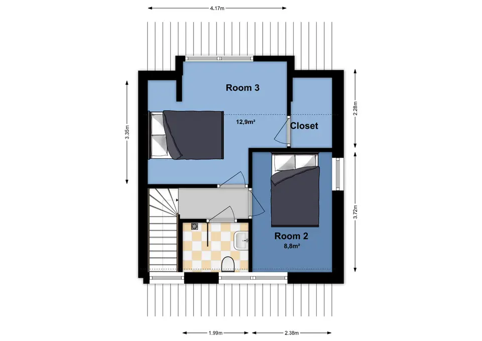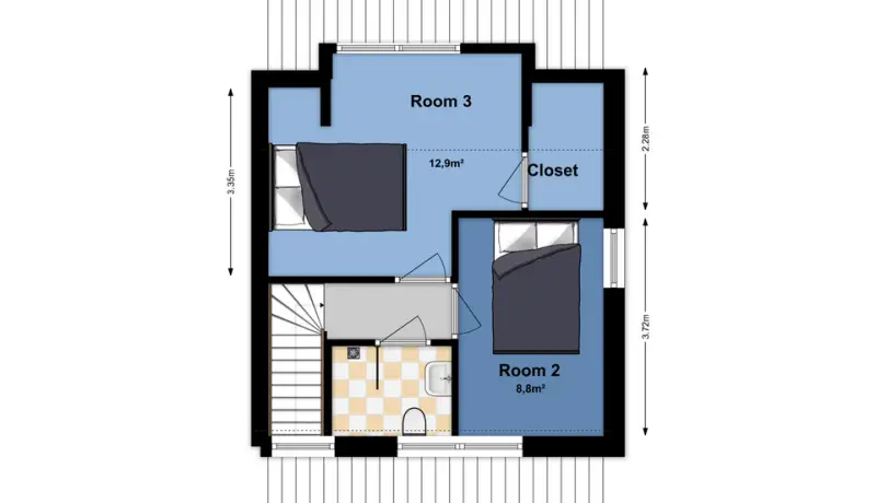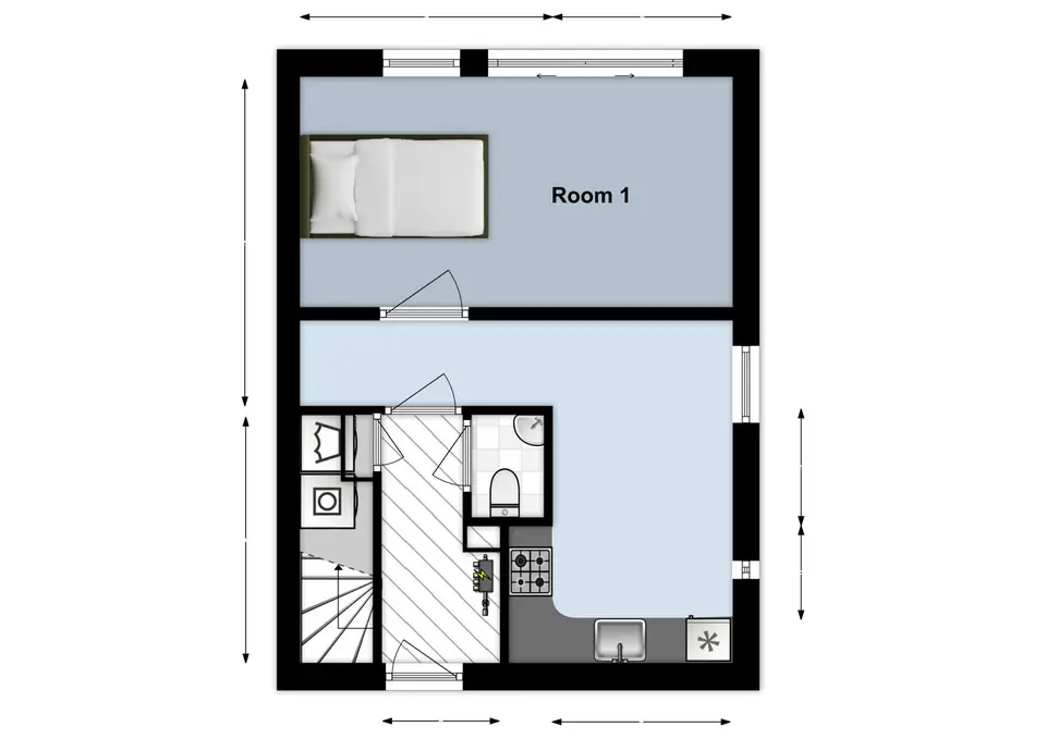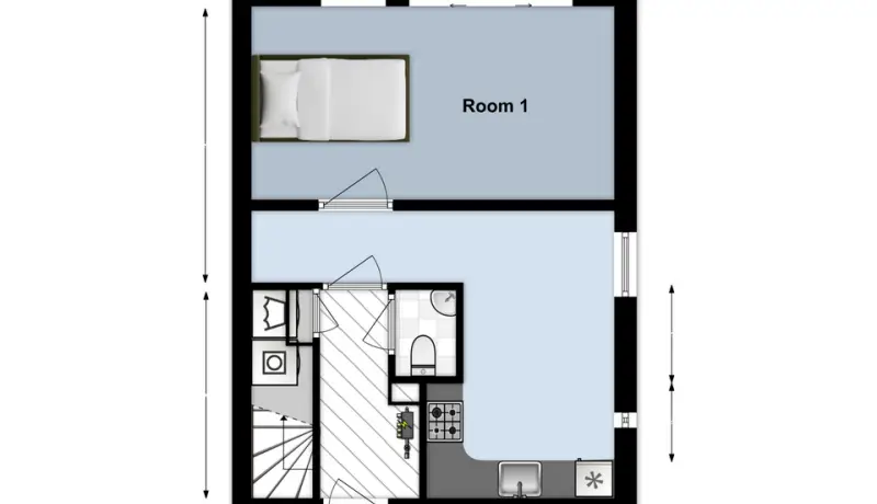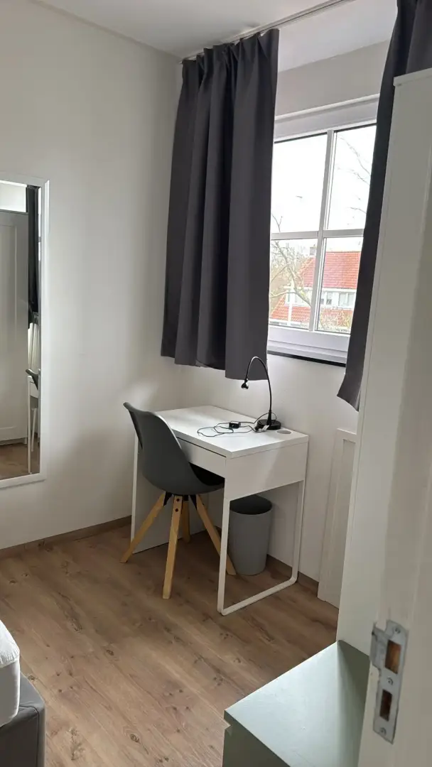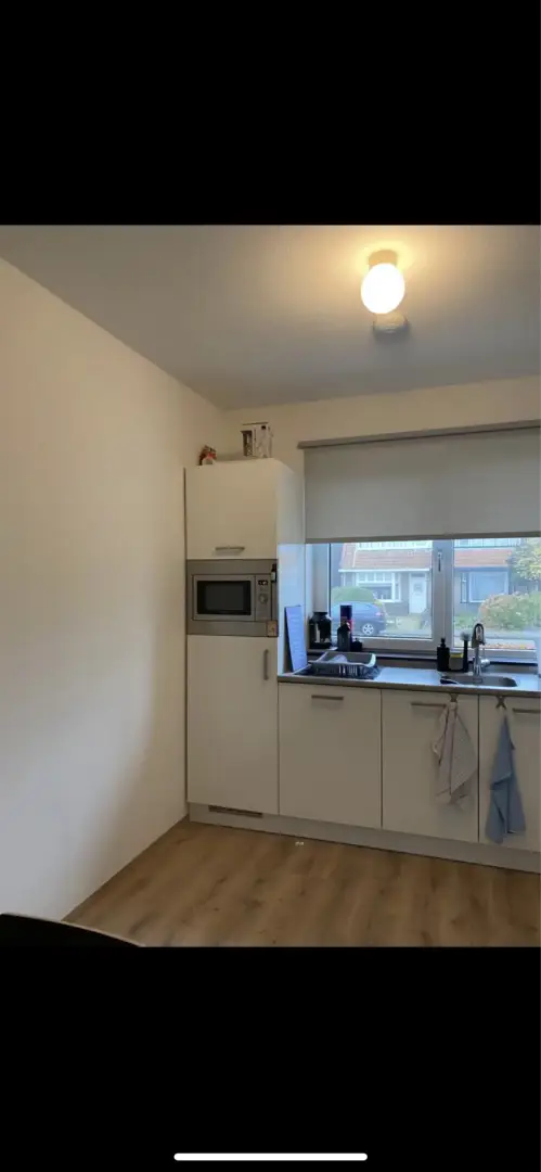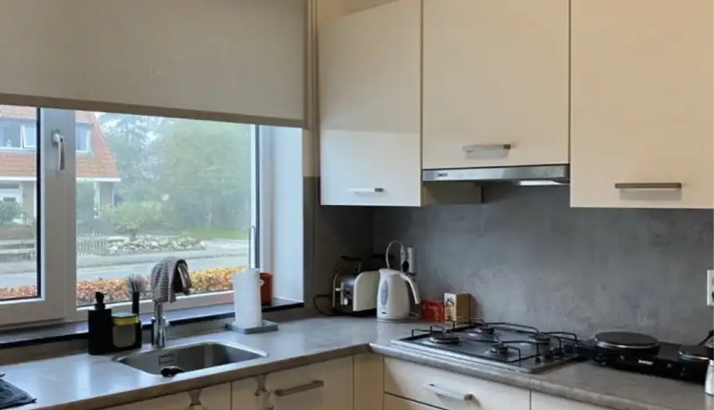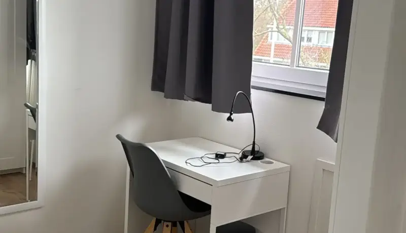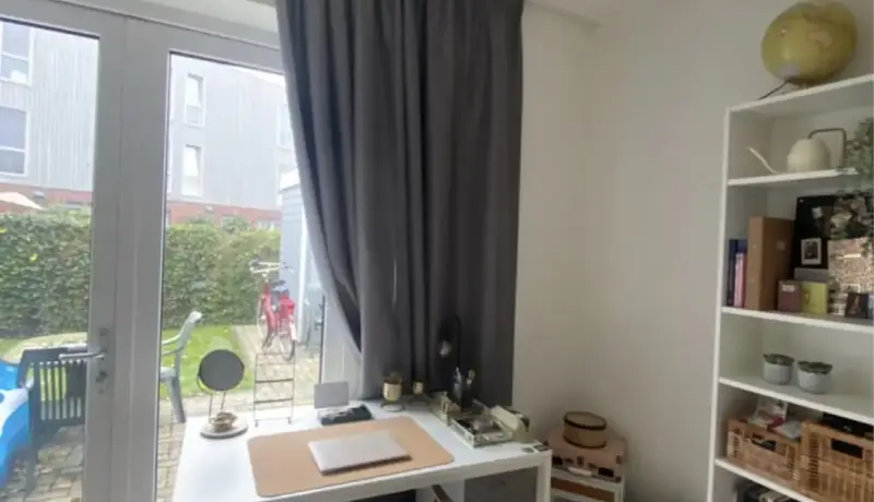 The Lekkumerweg 69 house is a newly build house in a quiet street. The house is around 90 m² in size. It features a bright kitchen area with plenty of natural light, two bedrooms upstairs, and another room downstairs that is currently used as a bedroom but can also serve as a living room. Next to the large garden, there is a garden shed for bikes or other materials. The accommodation is equipped with furniture such as beds, wardrobes, and desks. The house is ideal for up to 3 students.
