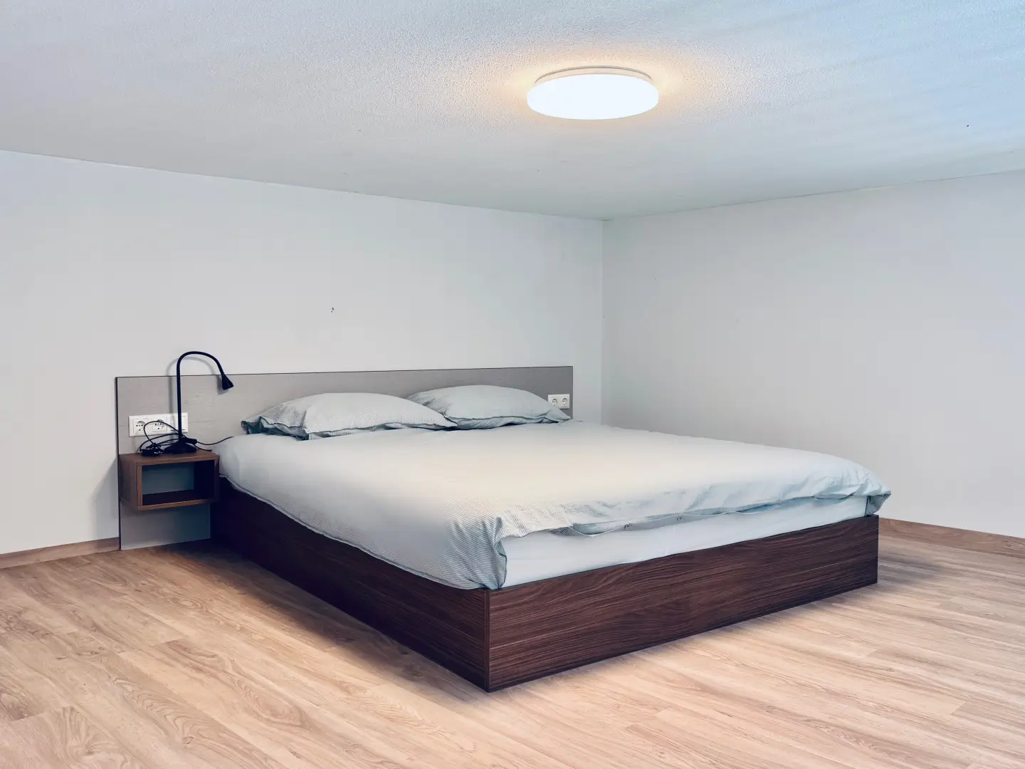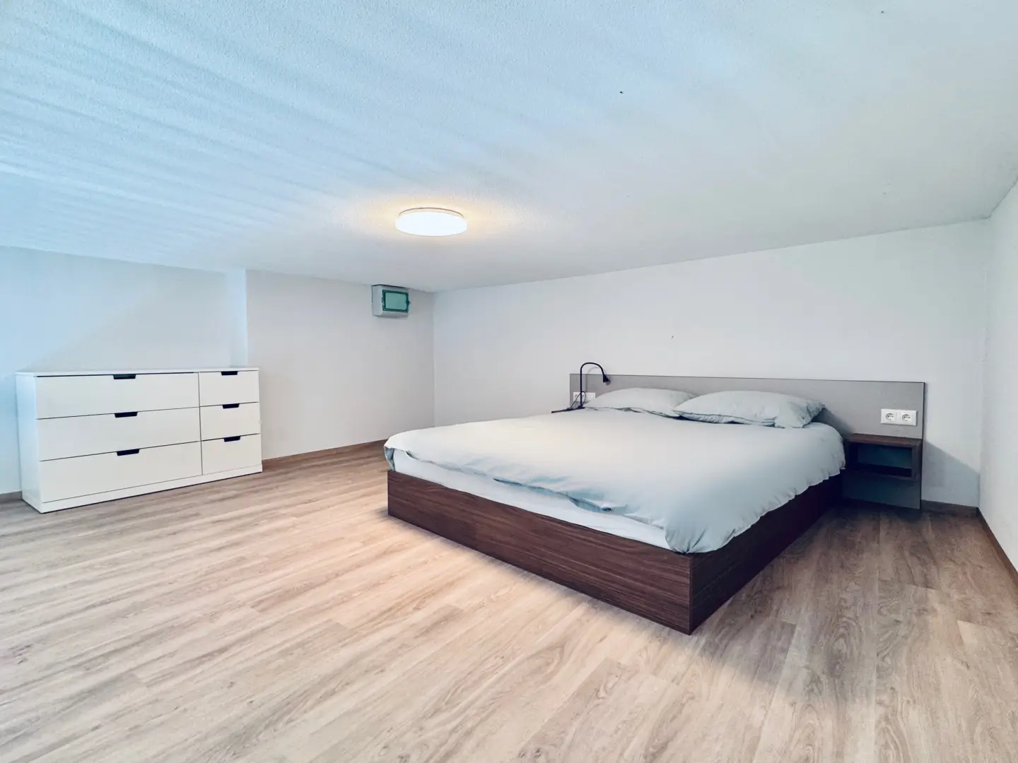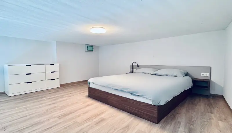 Furthermore the living area of the Loft is equipped with a dining table, a cozy couch and a coffee table. Beneath the stairs is a closet where you can store your clothes and suitcase.