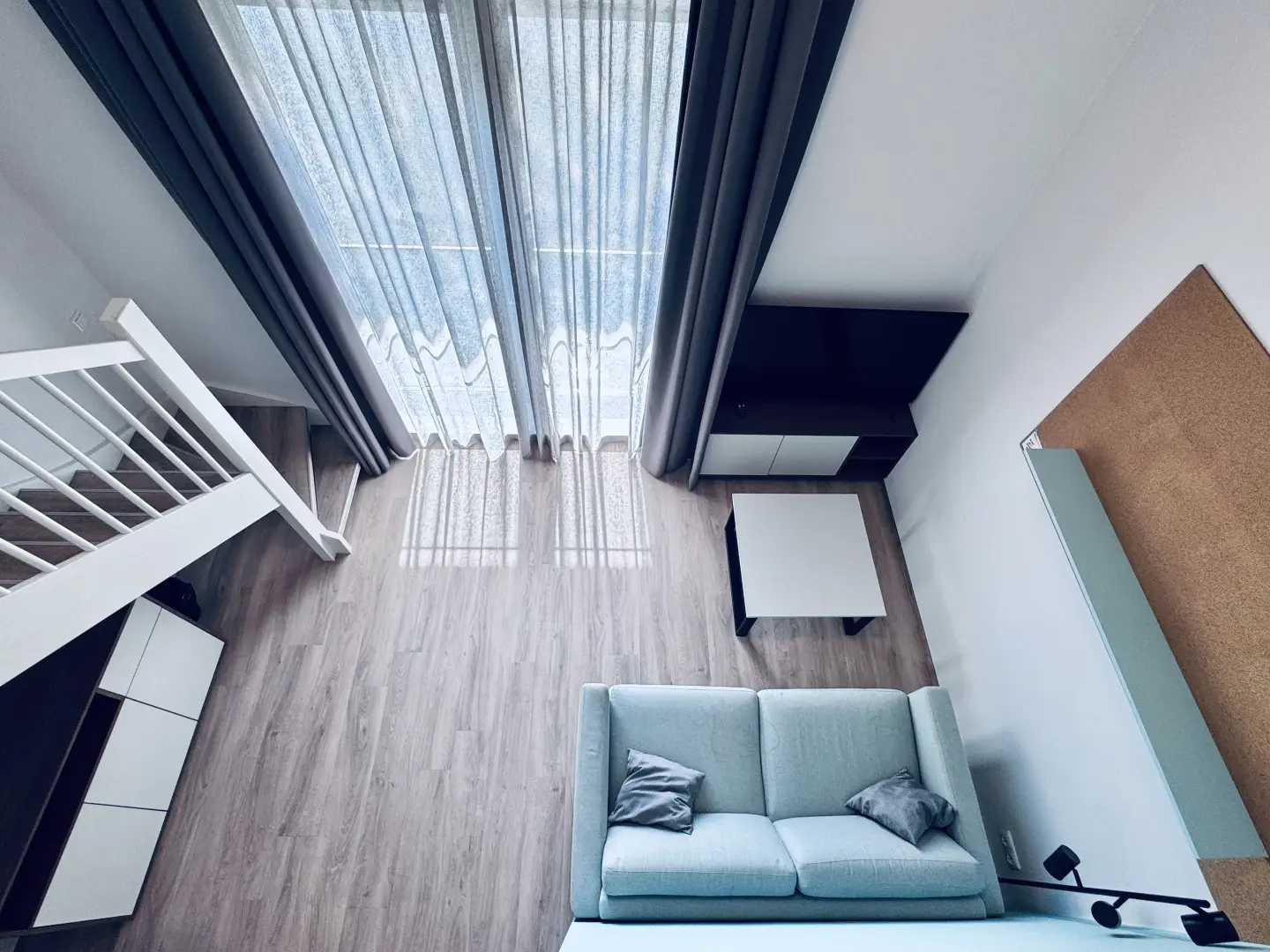 You will also have a 55-inch TV to enjoy the movie nights at home. This specific Loft has nice, large, inward opening windows with a French balcony
