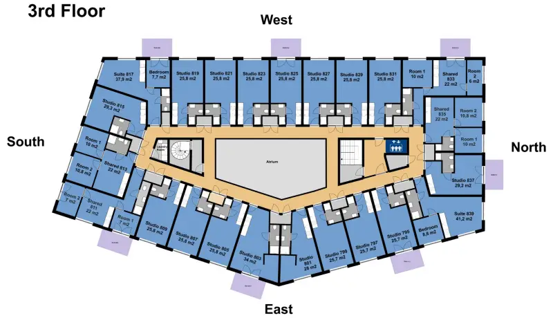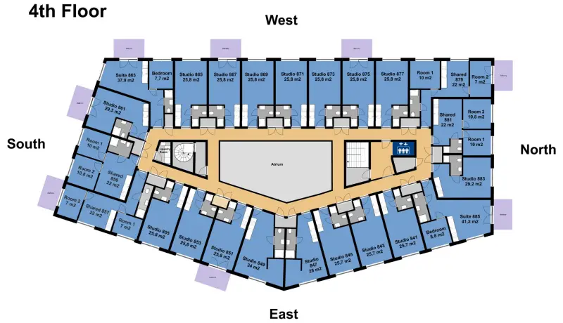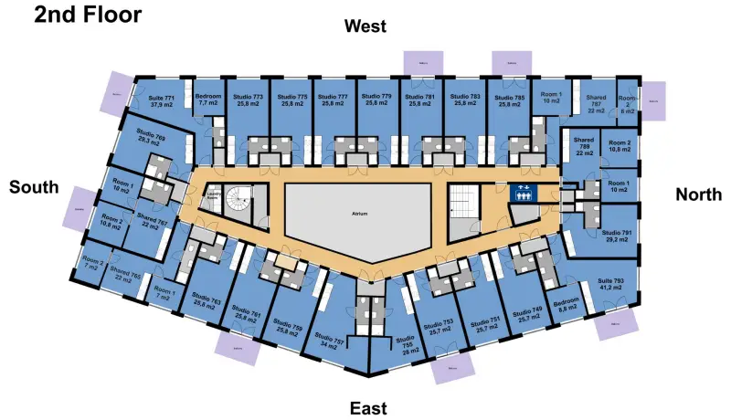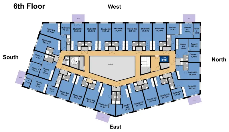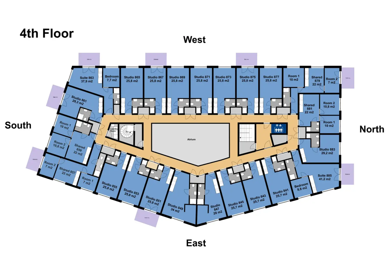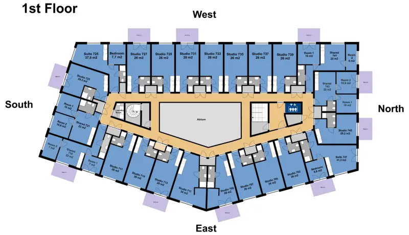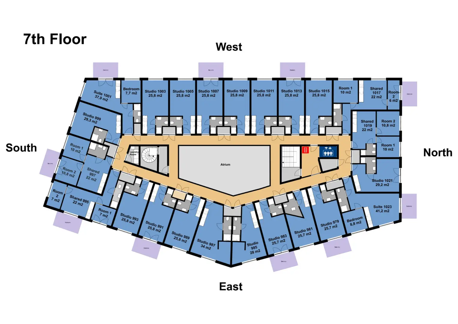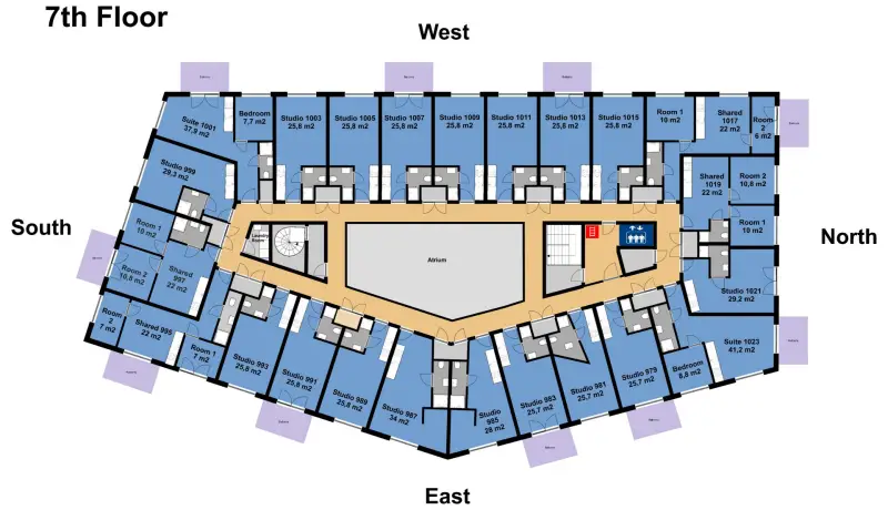 Building E features 181 brand-new studios and apartments, spread across 8 floors. The south-facing side of the building overlooks the scenic Rengerspark. Construction was completed in August 2023, offering modern, high-quality living spaces for students.