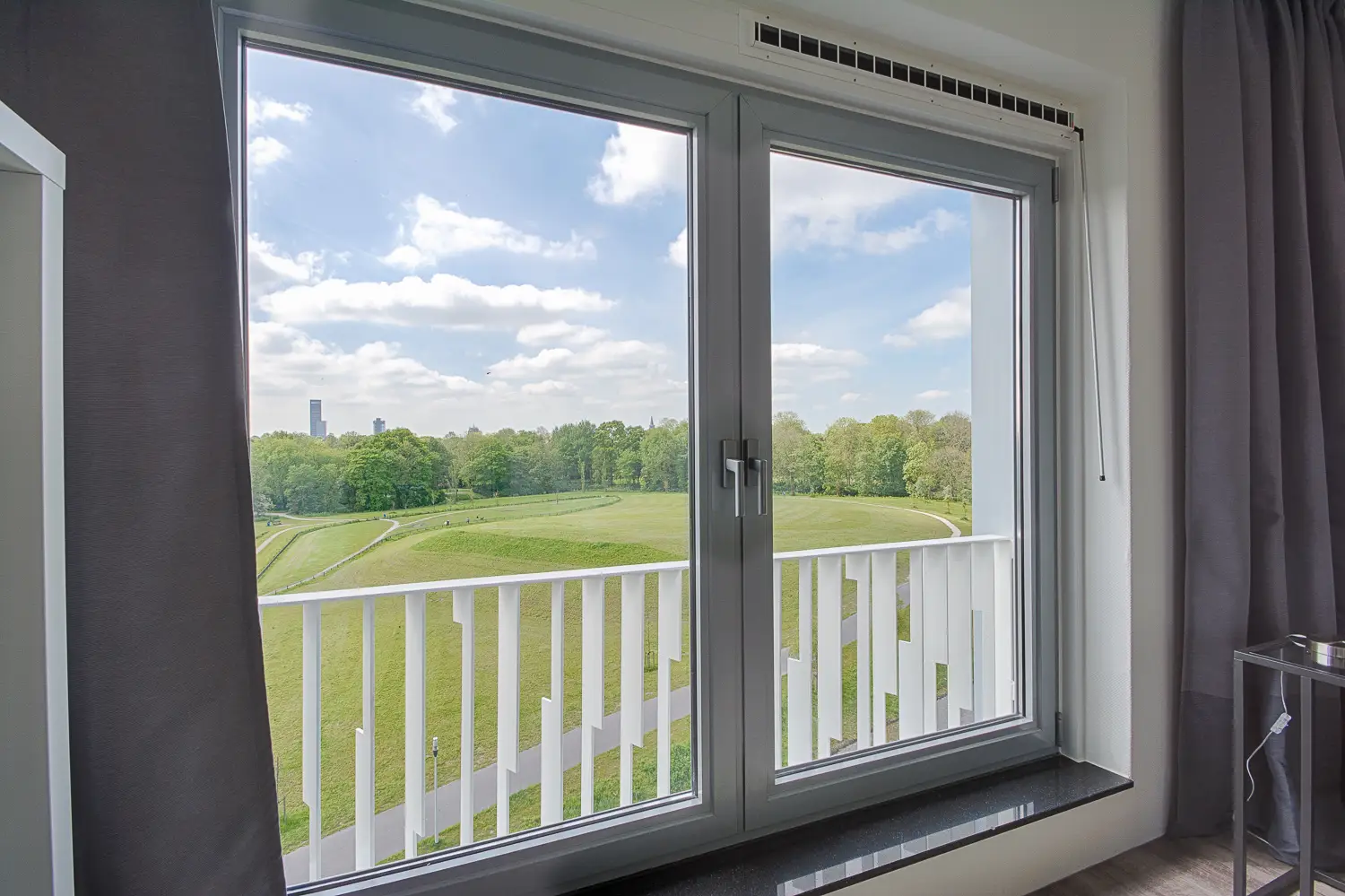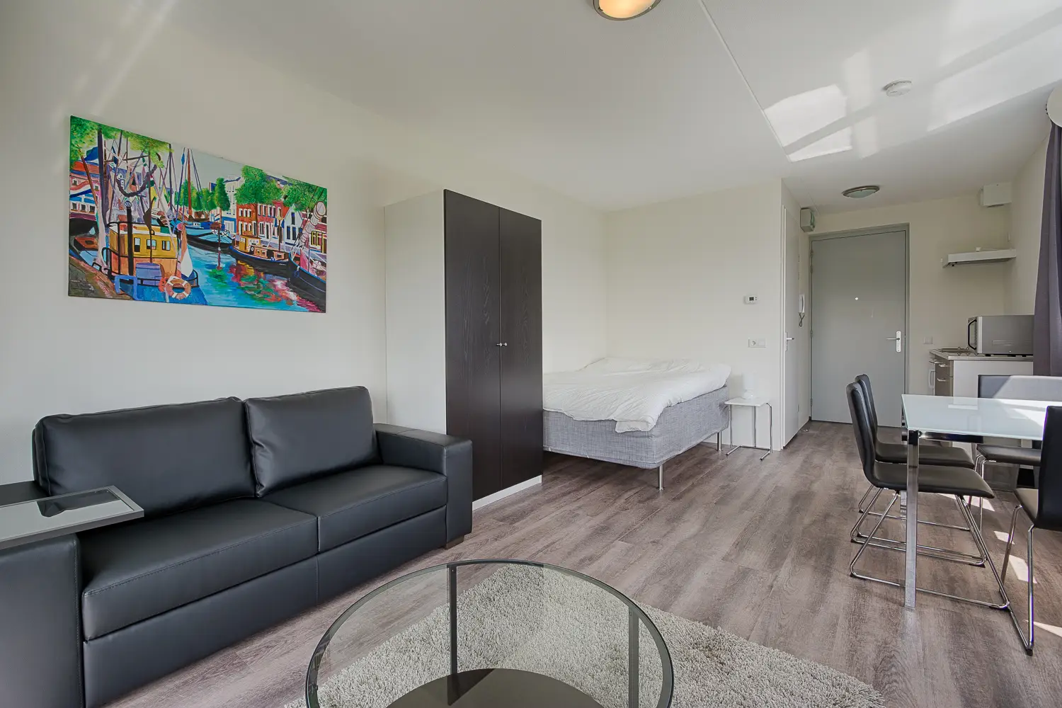 This studio has one double window and a second window on the side of the room. This makes the studio extra light.