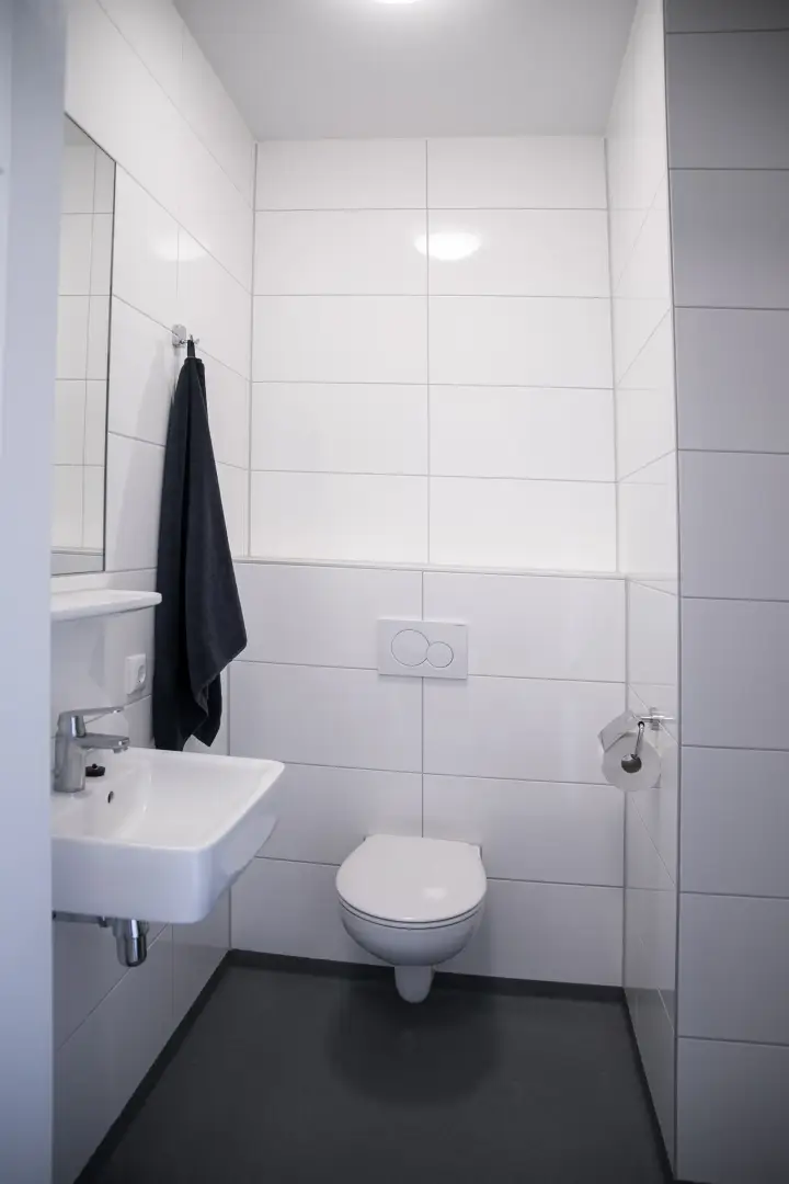 The kitchen is fully equipped with an oven/microwave-combination, stove, sink, refrigerator and a dishwasher. You won’t have to worry about cleaning dirty dishes yourself. Pots, pans and cutlery are not included.